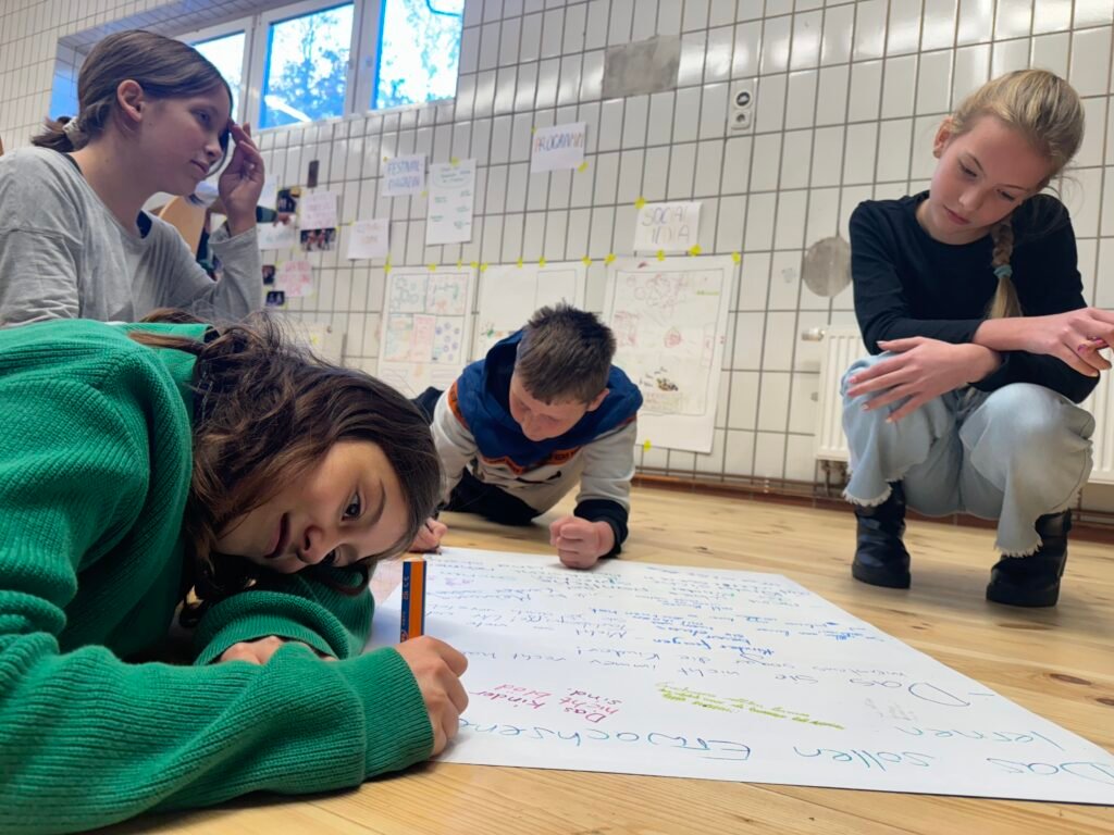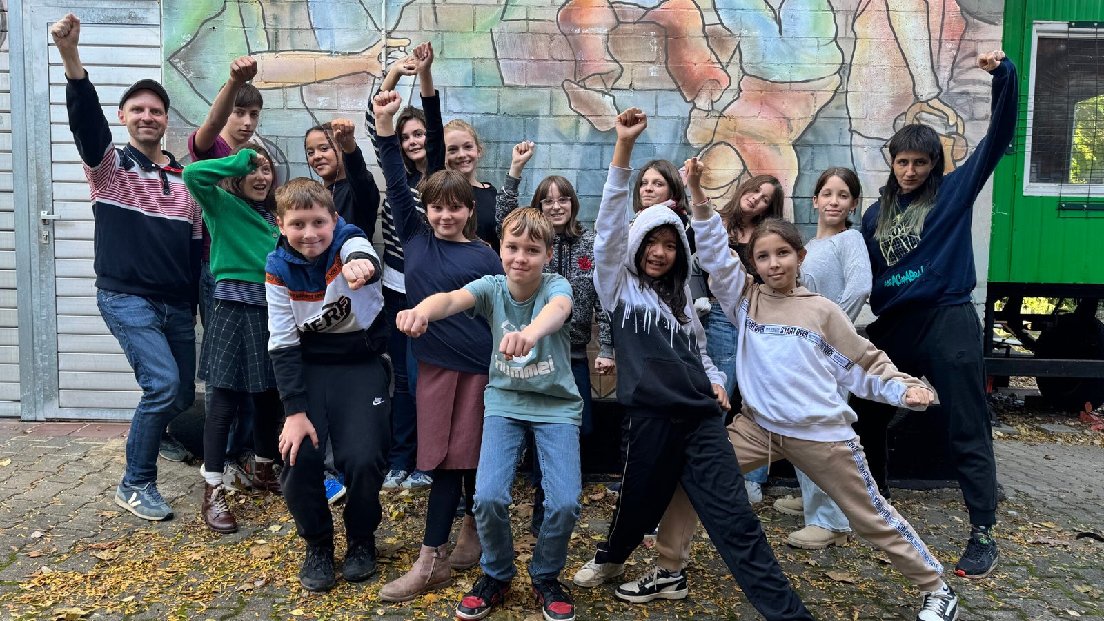 Das sind wir: Aleks (10), Bintou (12), Carlotta (11), Cosima Fedra (11), Damian (12), Ela (14), Eva (9), Josephine (11), Gina (11), Lorna (12), Luna (11), Maja (14), Mavi (12), Moritz (14), Radost (12), Romi (11) und Theo (12)